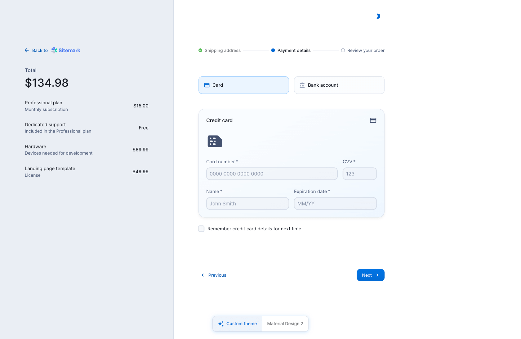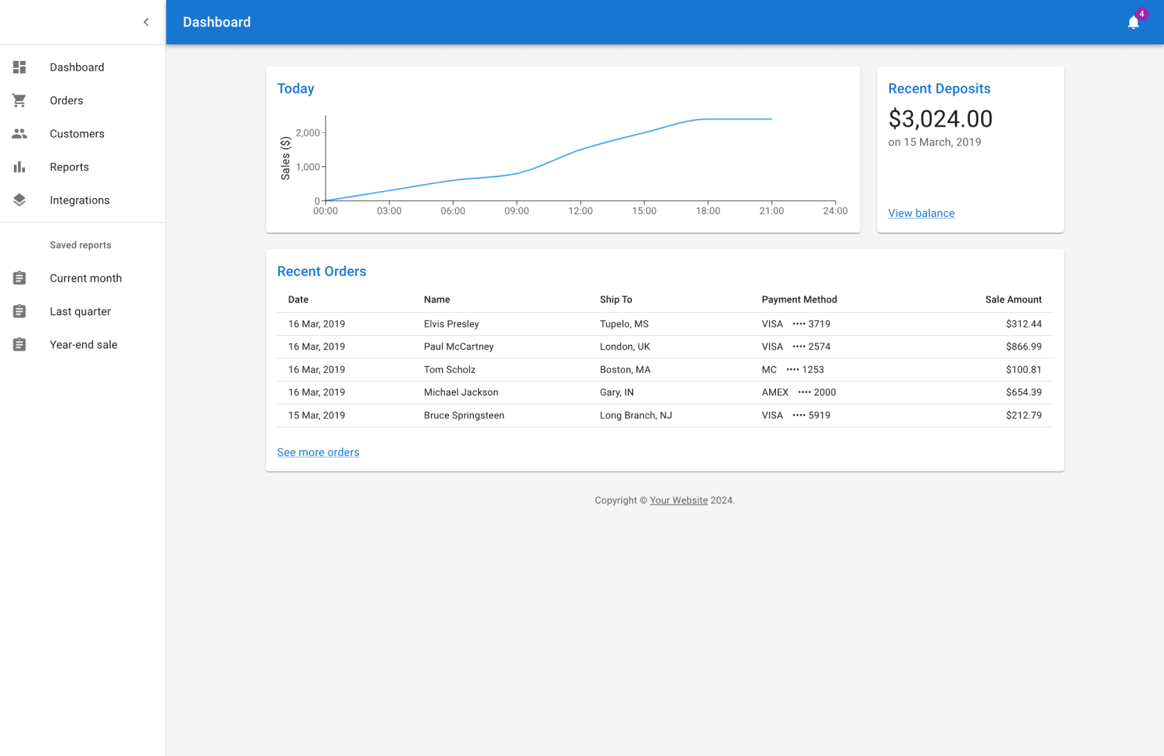 Our curated collection of free Material UI templates includes dashboards, landing pages, sign-in and sign-up pages, a blog, a checkout flow, and more. They can be combined with one of the example projects to form a complete starter.